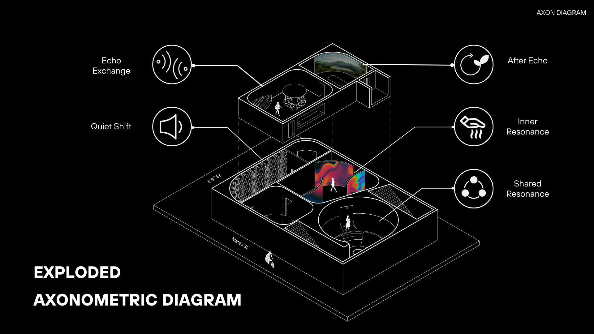 Echo Exchange: Each person stands in front of a microphone, and speaks, hums, or whispers. The system records the sound and layers it with delay and reverberation, building a collective soundscape