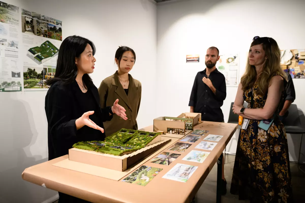 Through physical models and drawings, the project communicates a spatial response to wildfire recovery—centering the central garden as a place of refuge, connection, and renewal. These images were photographed by LA Times and featured in a Los Angeles Times article covering design responses to the Eaton Fire and its impact on Altadena.