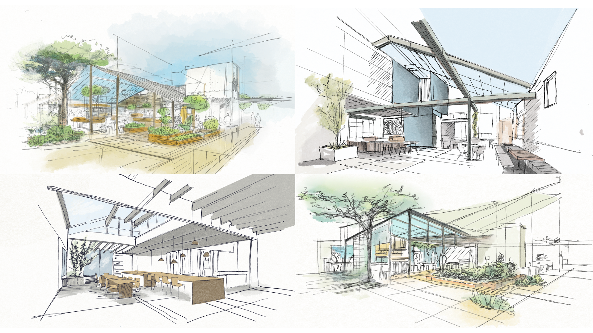 As the viewer moves through studios, circulation paths, and into the central garden, the sketches emphasize moments of transition: compression and release, threshold crossings, and shifting relationships between interior and landscape. These sequences mirror the project’s narrative of retreat and reconnection, guiding users from protected, inward-facing spaces toward shared and restorative environments.